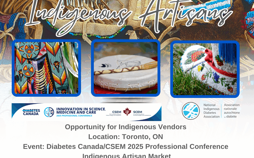 15 January 2025We are looking for Indigenous vendors who are interested in selling their work for one day only at the 2025 Diabetes Canada/CSEM Professional Conference. This is a great opportunity to showcase and sell your products to a large and diverse audience.